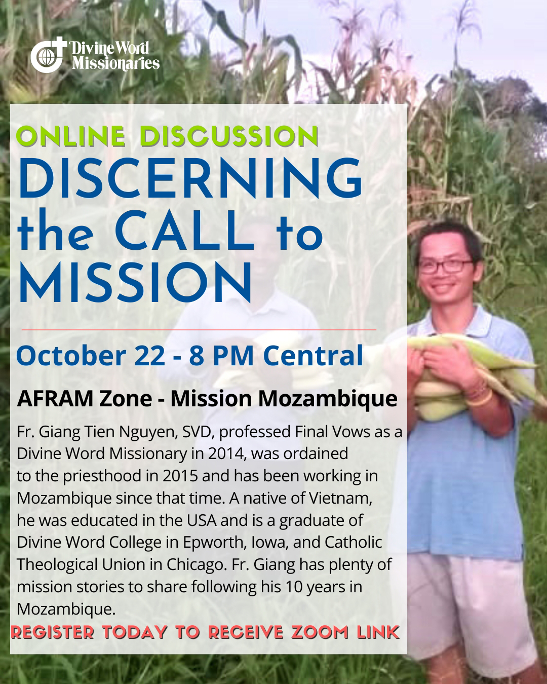 Learn MoreJoin a discussion for one hour each month with men, like you, who are discerning a religious vocation. Facilitated by the Divine Word Missionaries Vocation Team, you will learn in “real time” about the missionary ministry of our brothers and priests as guest missionaries join our conversations from around the world.